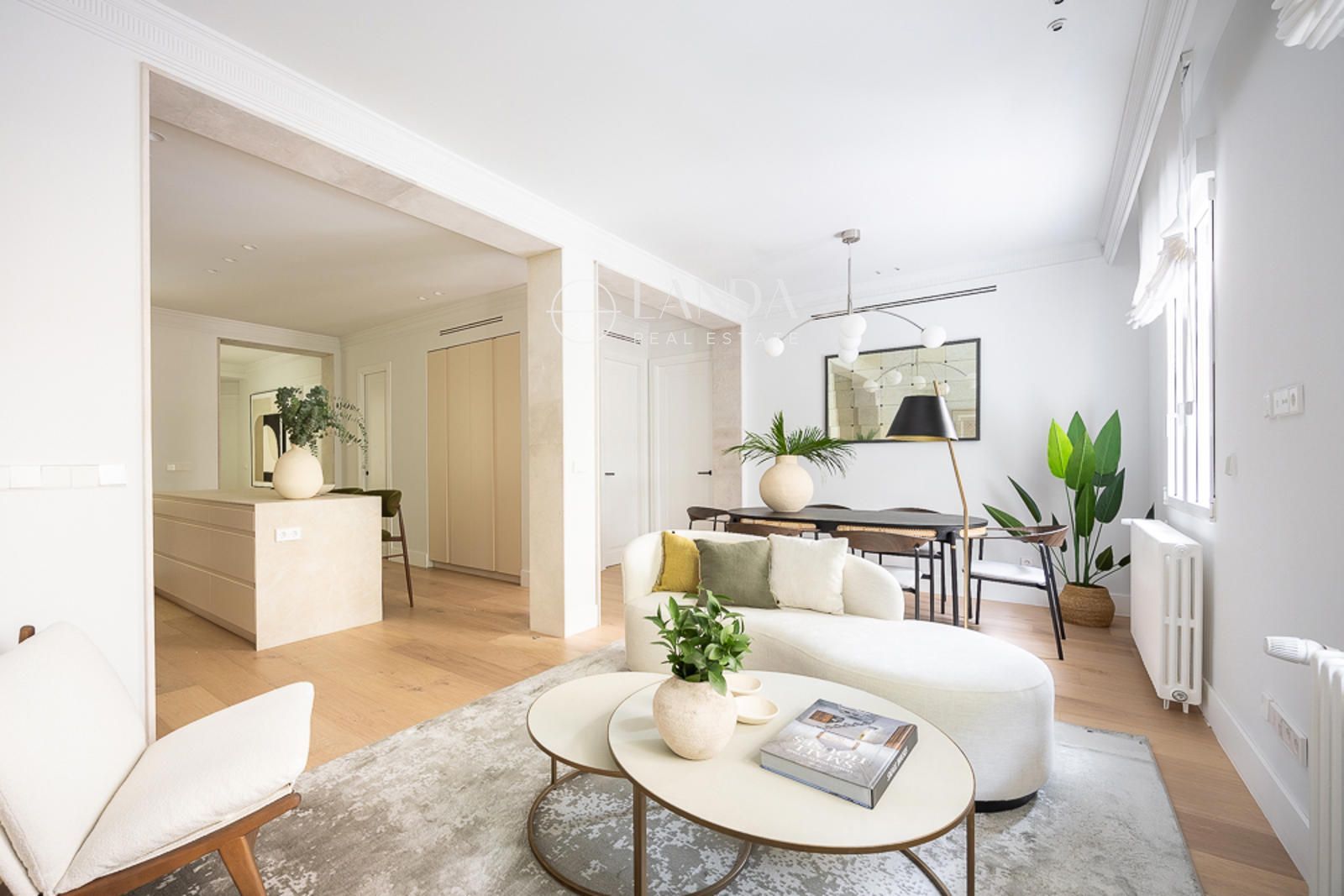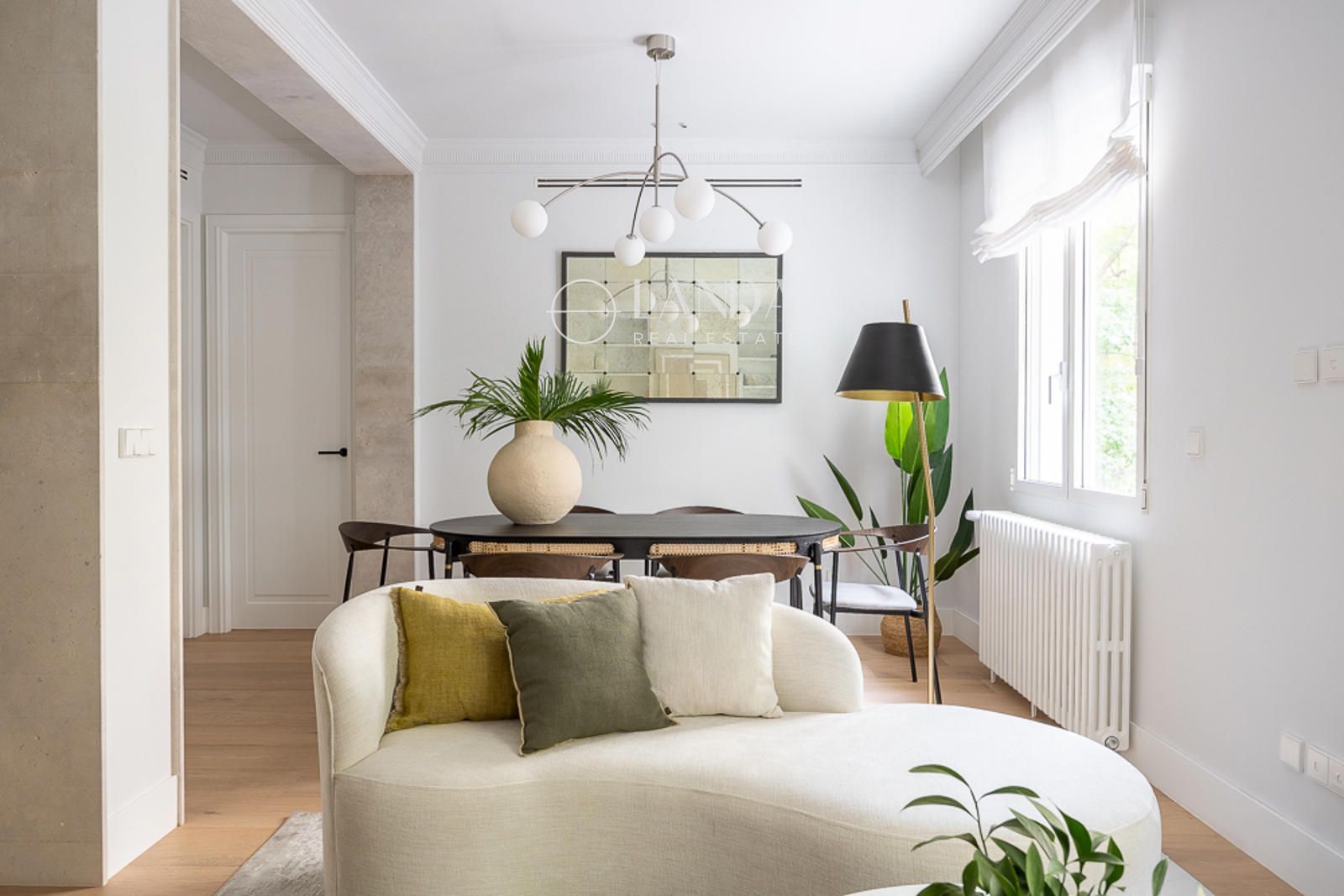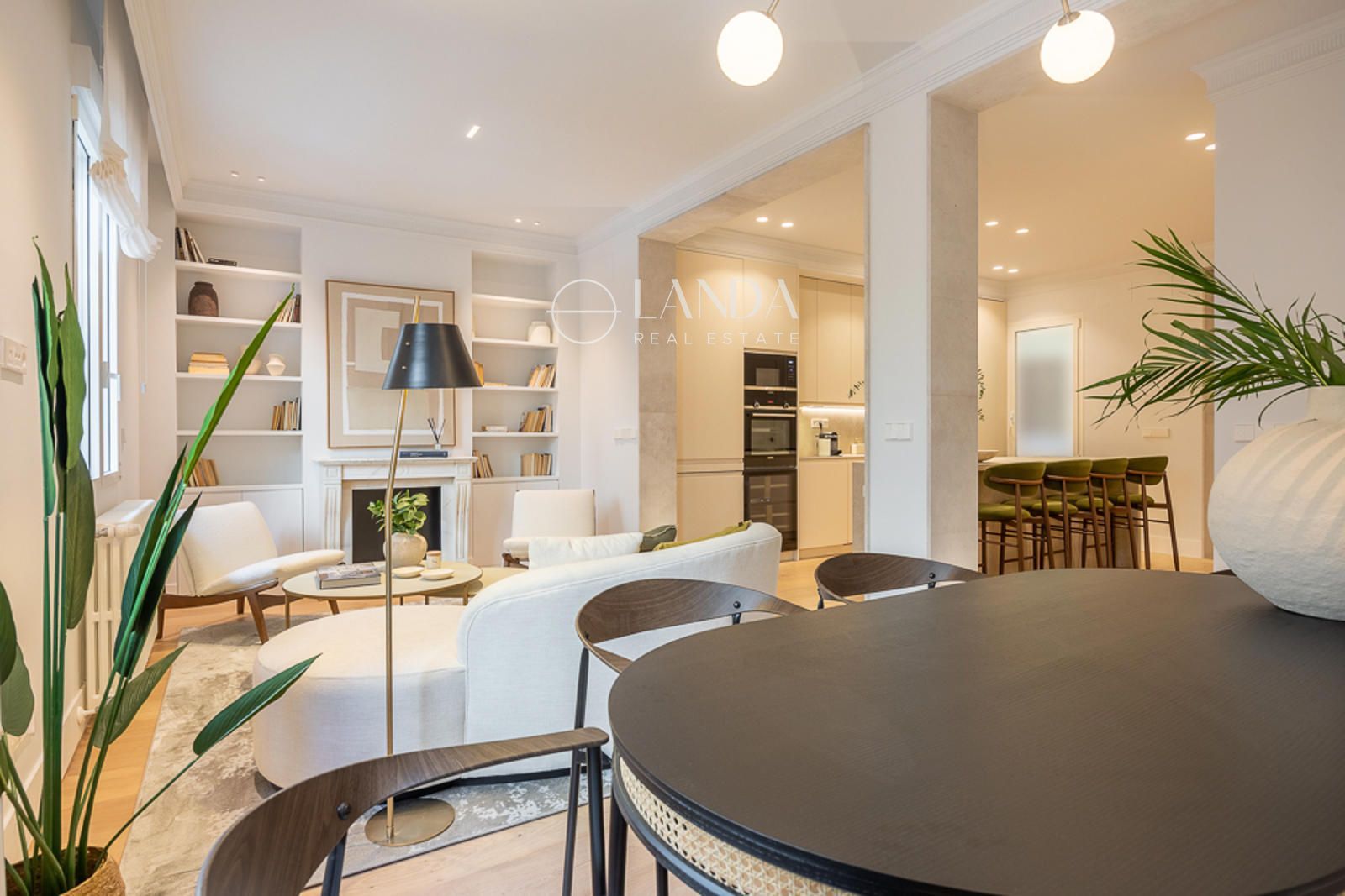 Elegante vivienda reformada de 148 m² en Almagro, Chamberí. Cuenta con 2 dormitorios en suite, aseo de cortesía, cocina equipada y un amplio salón. Orientación suroeste, conserje y ascensor. Ubicada en una de las zonas más representativas de Madrid, a pasos de Colón, rodeada de restaurantes, parques y boutiques.