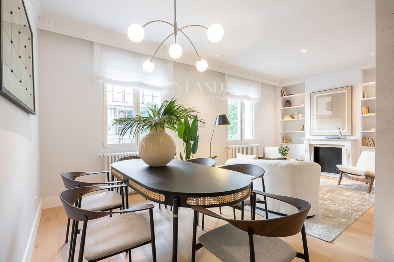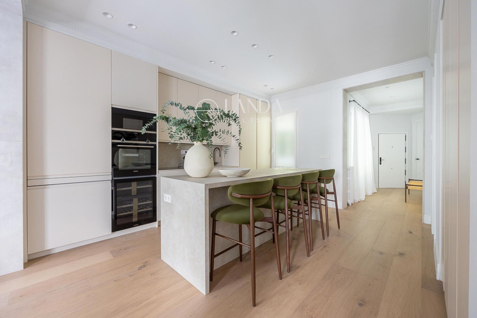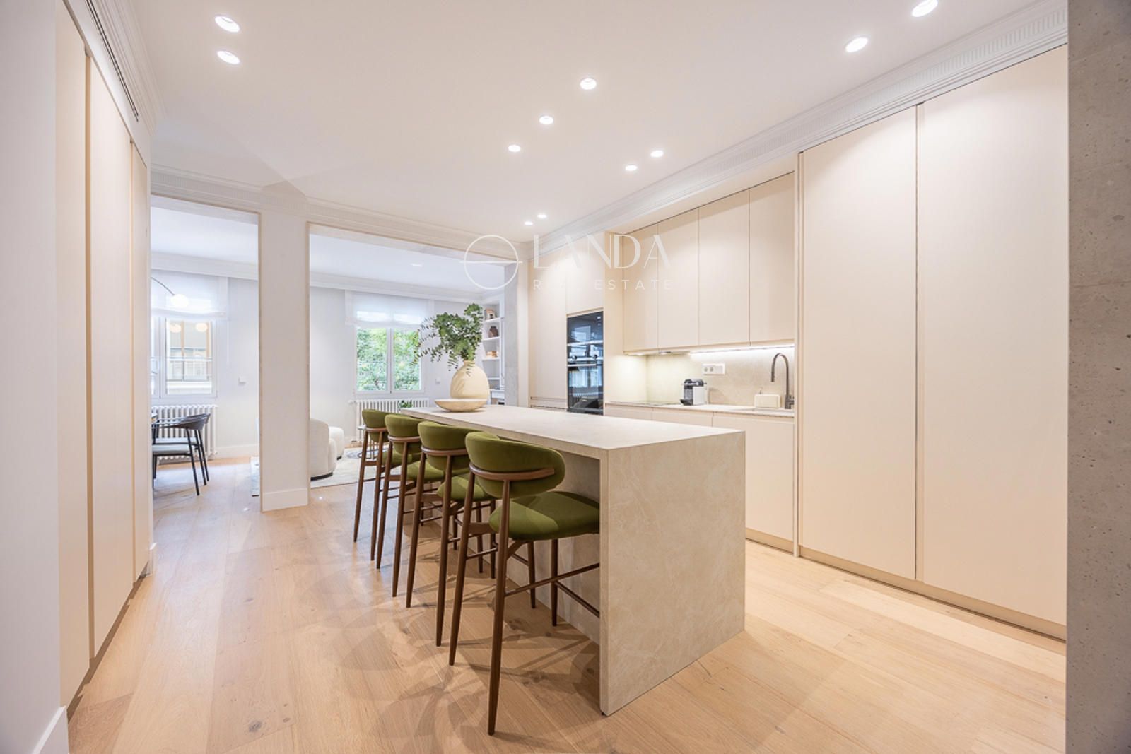 Elegante vivienda reformada de 148 m² en Almagro, Chamberí. Cuenta con 2 dormitorios en suite, aseo de cortesía, cocina equipada y un amplio salón. Orientación suroeste, conserje y ascensor. Ubicada en una de las zonas más representativas de Madrid, a pasos de Colón, rodeada de restaurantes, parques y boutiques.