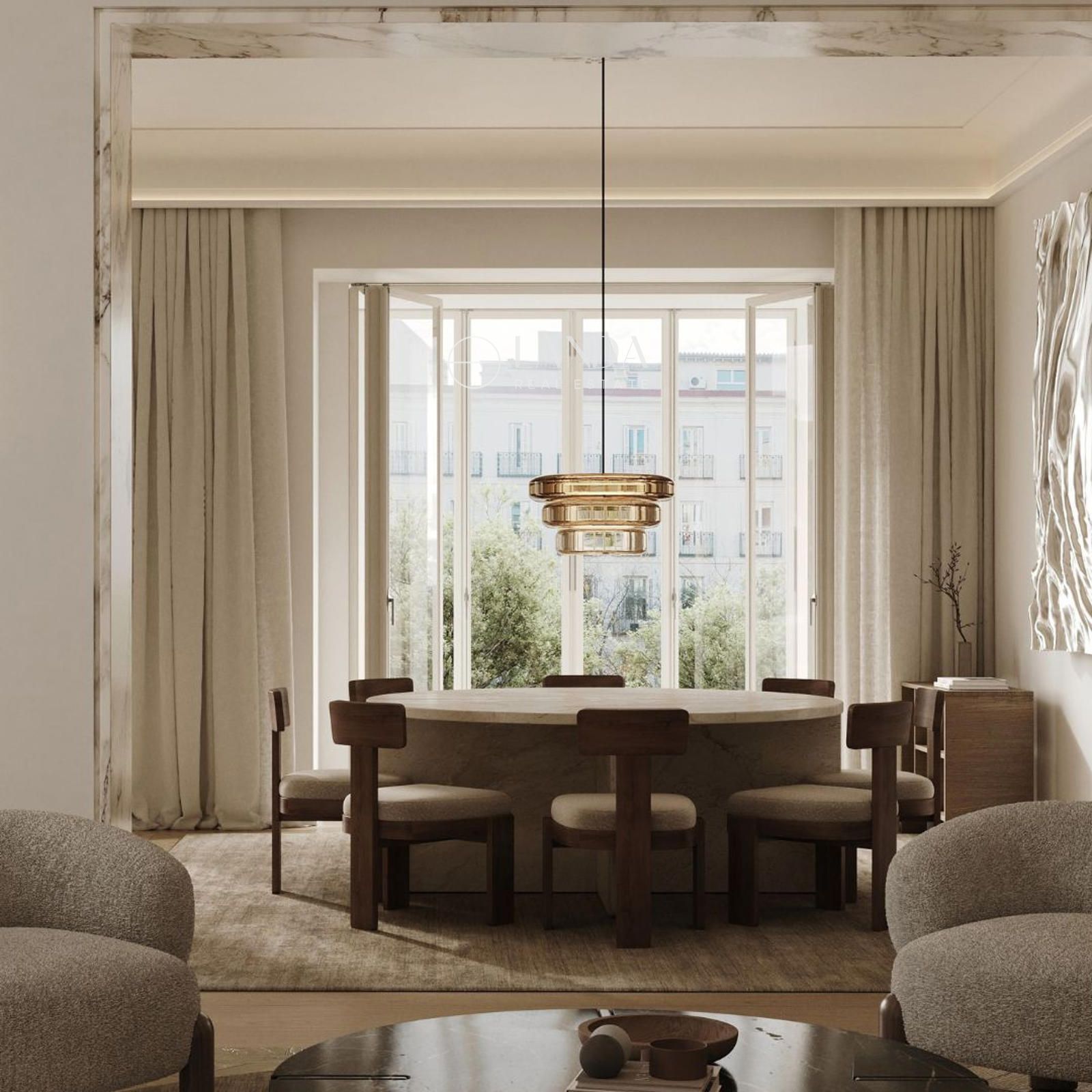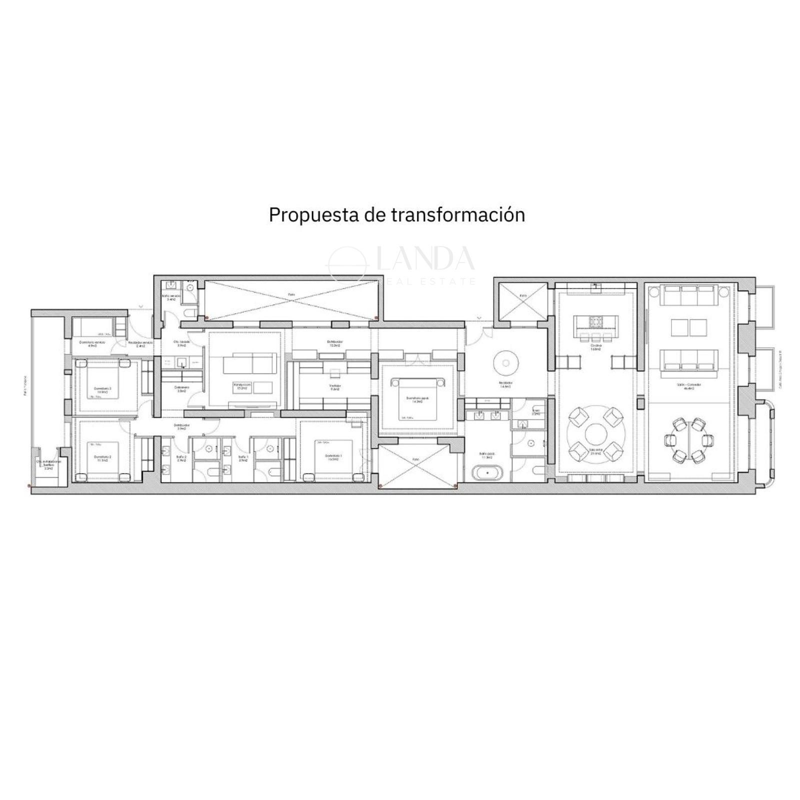 Actualmente en estado demolido, se ofrece con un proyecto opcional y personalizable que permite adaptar cada espacio a los gustos más exigentes. La zona social —bañada por luz natural— conecta visualmente con la historia y la elegancia del Barrio de Salamanca.