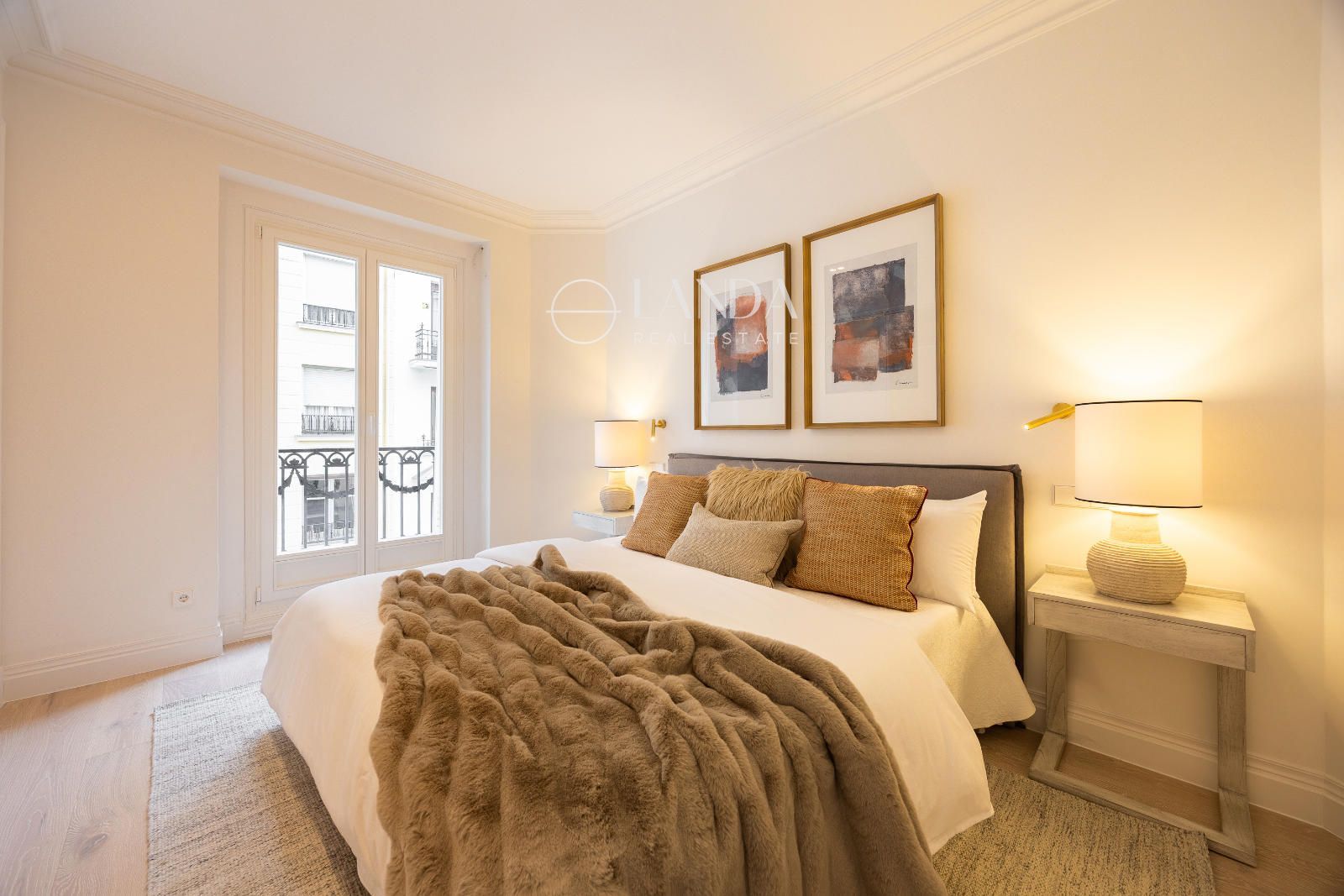 Elegancia, diseño y vistas al Retiro. Vivienda exterior de 148 m² totalmente reformada, con 3 dormitorios en suite, salones, comedor, cocina abierta, aseo de cortesía, trastero y zona de lavado. Primera planta en finca clásica con orientación sur y cuatro balcones a la calle. Amueblada y equipada con acabados Porcelanosa. Ubicación privilegiada junto al Parque del Retiro.