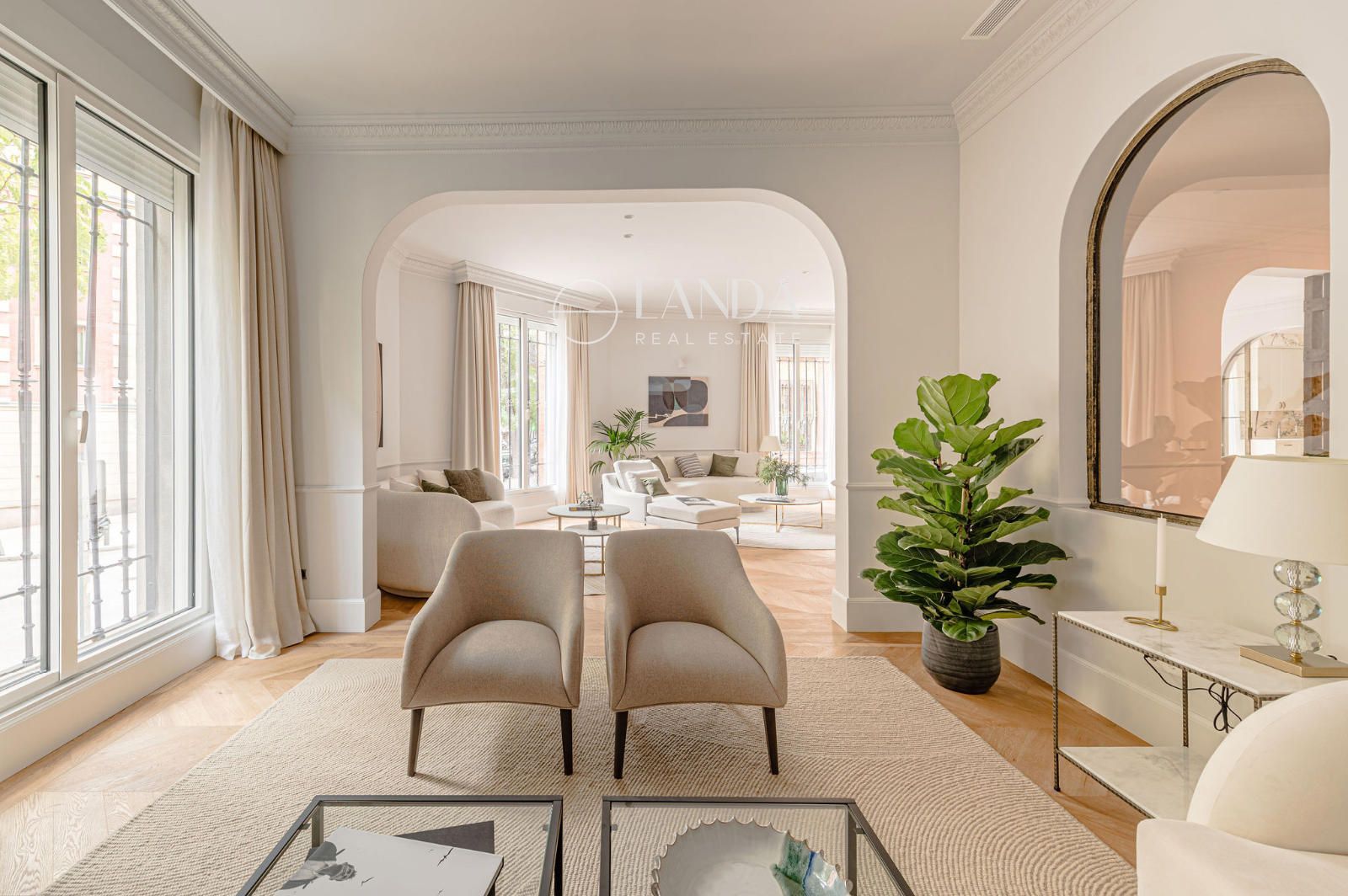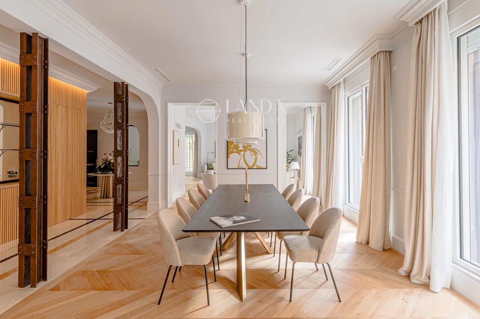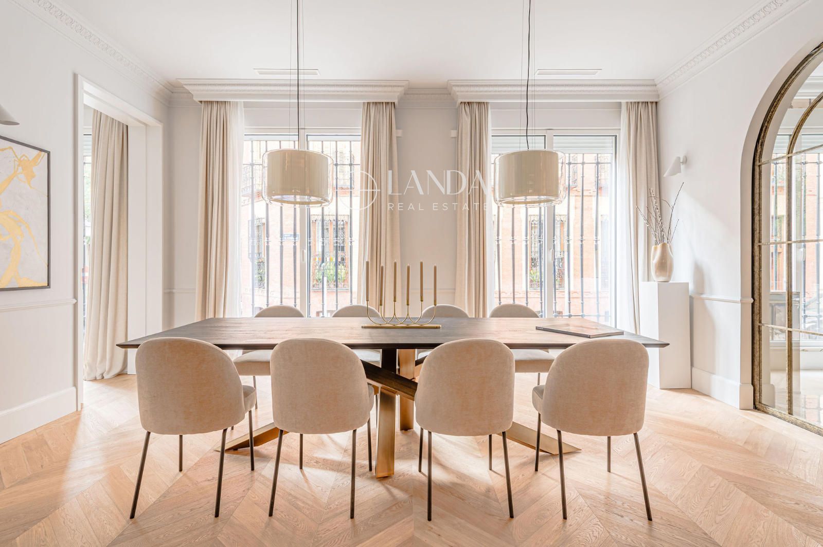 Suelos de mármol y madera, techos de 3,10 m, aerotermia con suelo radiante/refrescante y AC adicional. Orientación Este y Sur con cinco ventanales exteriores: uno hacia el Este y cuatro hacia el Sur, aportando luz y amplitud. Trastero incluido. Una residencia que fusiona el carácter señorial con el confort más avanzado en una de las direcciones más codiciadas de Madrid.