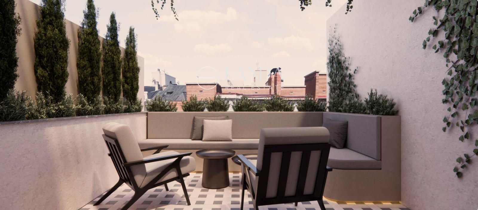Ático reformado de 135 m² en la quinta planta de un edificio con ascensor en el barrio de Cortes. Cuenta con 2 dormitorios, 2 baños, terraza privada, cocina independiente, salón de 30 m² y plaza de garaje. Luz natural, diseño y tranquilidad en pleno centro de Madrid.