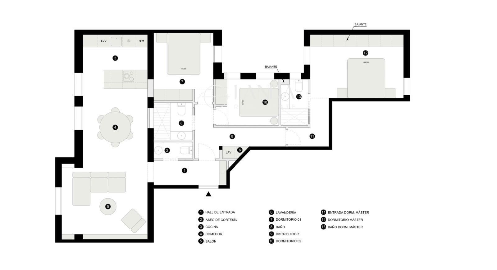 Con 3 habitaciones y 3 baños, la distribución actual ofrece flexibilidad real para adaptarse a tu estilo de vida. La accesibilidad al patio de bajantes desde casi todas las estancias permite múltiples configuraciones: desde crear baños en suite en los dormitorios hasta separar claramente zonas de día y noche según tus necesidades.