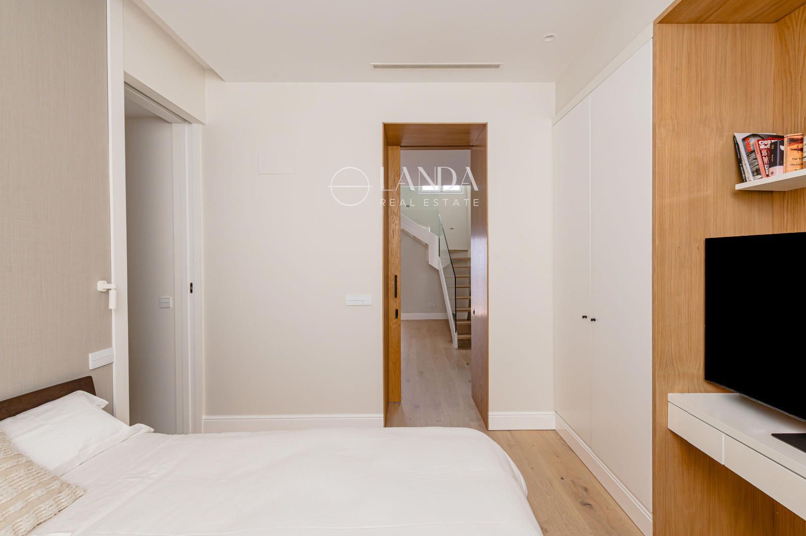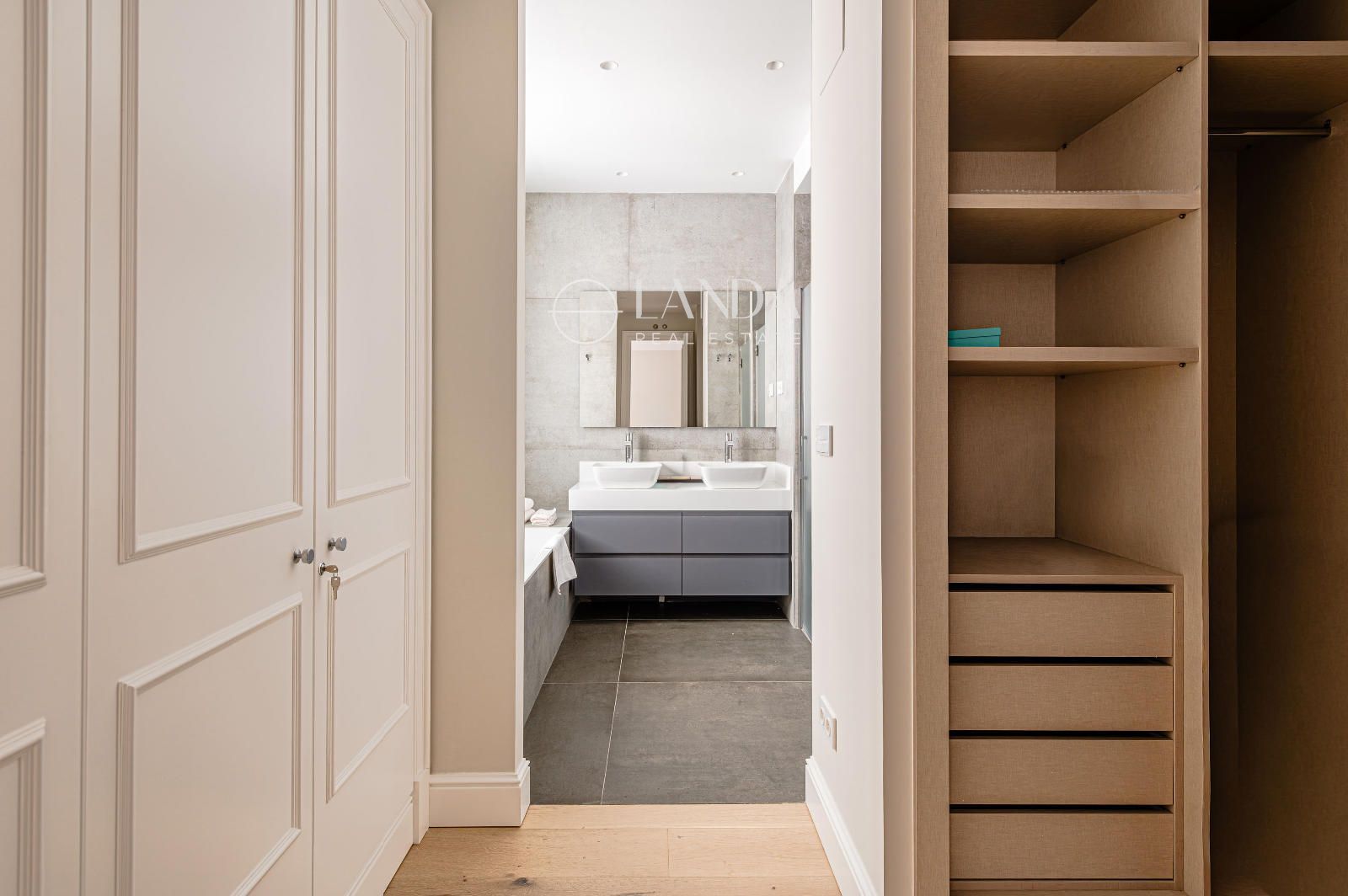El dormitorio principal es un verdadero refugio: espacio suficiente para zona de lectura o despacho, vestidor de grandes dimensiones y baño completo con doble lavabo, ducha, bañera y aseo separado. El segundo dormitorio doble cuenta con baño en suite y armario empotrado.