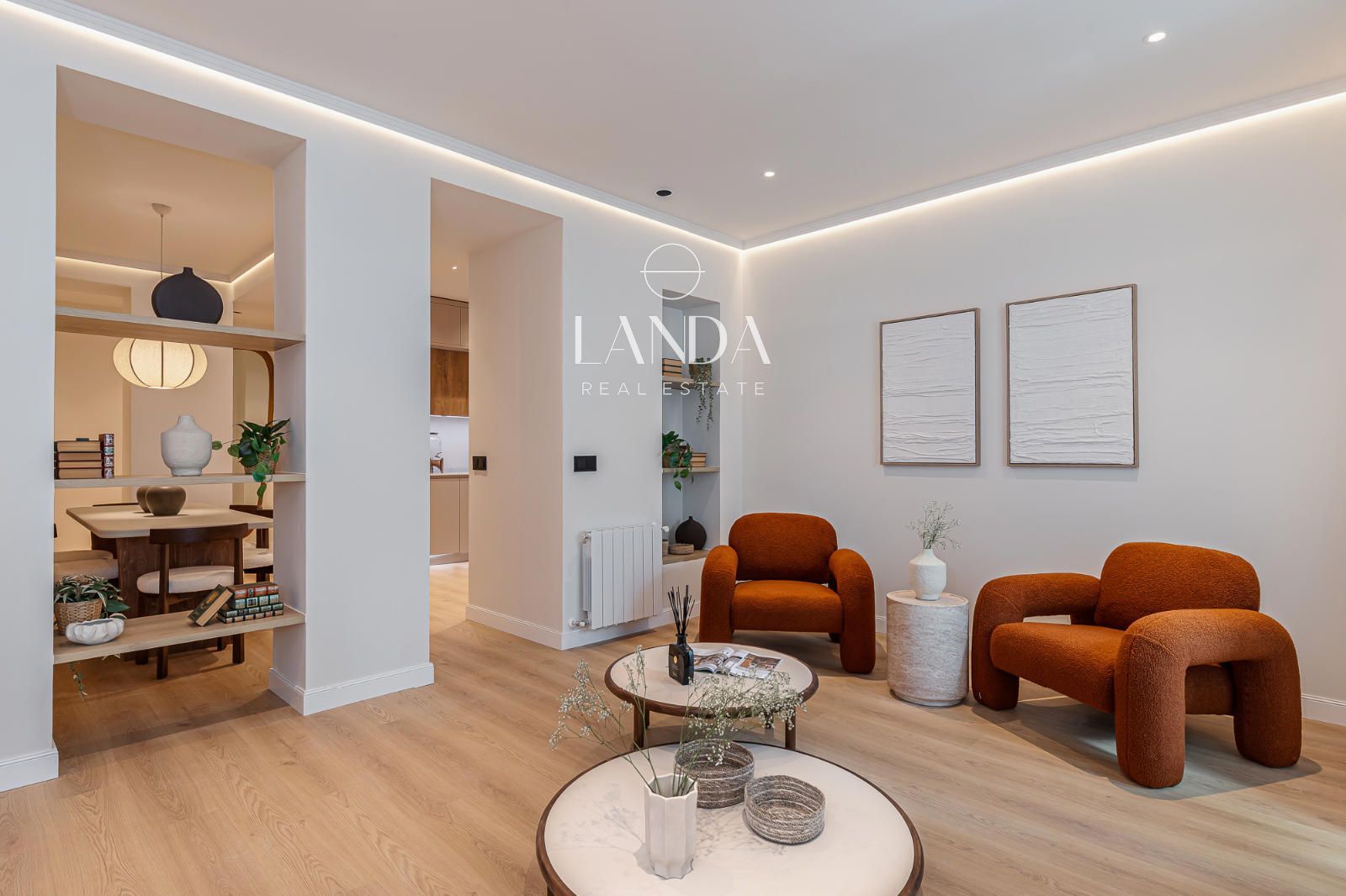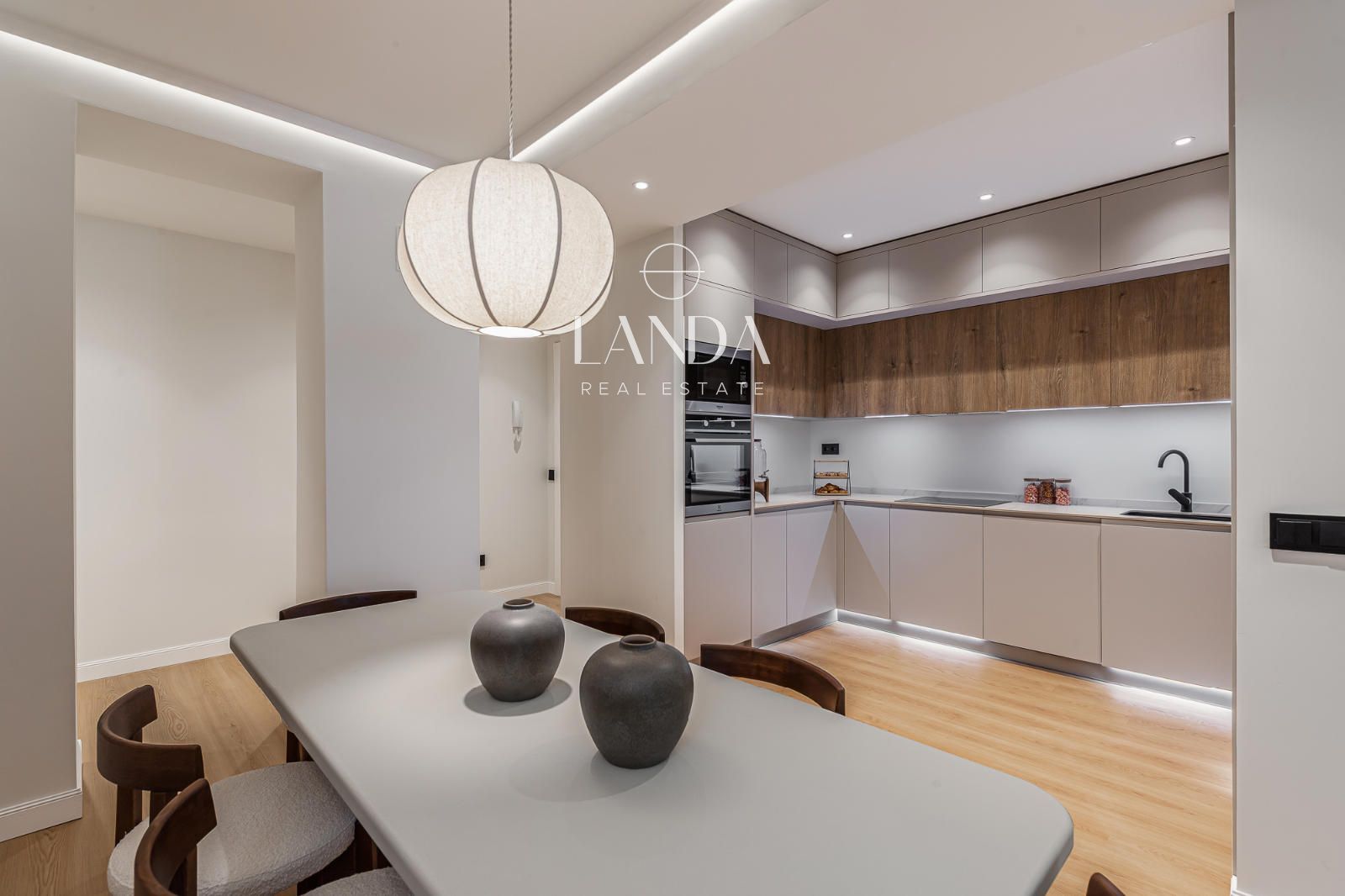 El amplio salón-comedor, bañado por la luz natural gracias a su orientación sur, se integra de forma armoniosa con una cocina abierta totalmente equipada, creando un espacio cálido y acogedor ideal tanto para la vida cotidiana como para recibir invitados. Los materiales, la iluminación indirecta y los acabados aportan una sensación de serenidad y sofisticación.
