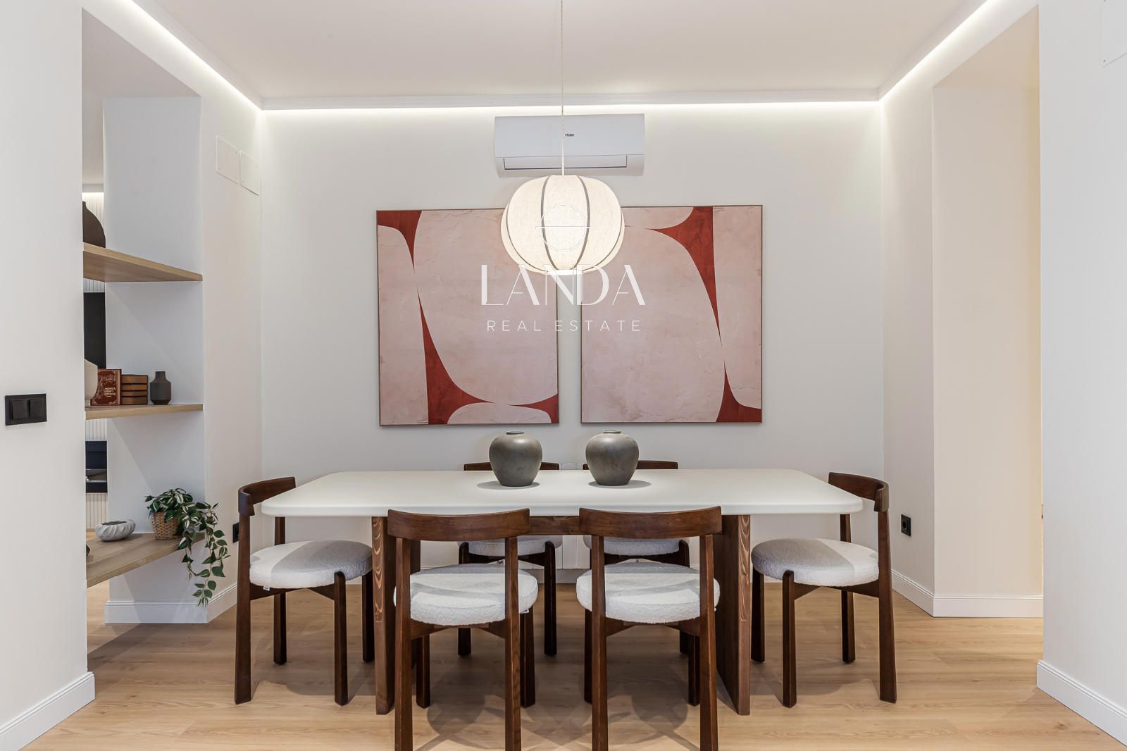 La propiedad se encuentra en una finca clásica de principios del siglo XX, perfectamente conservada y con ascensor y servicio de portería. La vivienda, completamente reformada con un cuidado diseño contemporáneo, cuenta con 159 m² y una distribución funcional pensada para el confort diario.